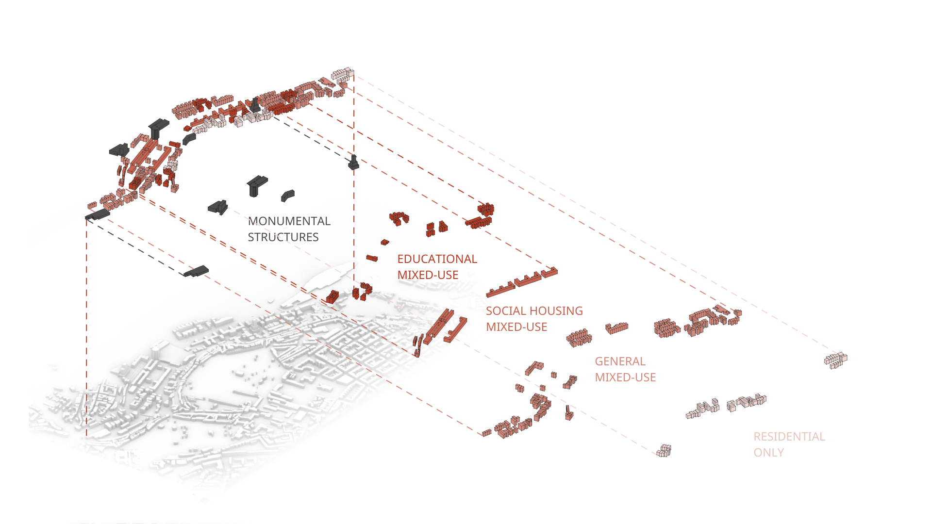 LABIRINTO | The Urban Hedge Maze creates an intimate pedestrian-focused campus in the infamously stigmatized Alcântara Valley of Lisbon, Portugal. An intricately crafted network of courtyards, pathways, and the extension of Lisbon’s green belt; the campus works to prioritize the human scale while moving throughout. Paying tribute to neighboring Campo De Orique, Labirinto samples the historic courtyard block grid and inverts it, bringing the primary functionality into the internal courtyards. Labirinto connects these courtyards through a series of connections created through analysis of topography, exterior connections, and circulation. Labirinto uses these courtyards to define program, creating educational, social housing, mixed-use, and strictly residential cores scattered throughout. The network works for the community, connecting different cores in a purpose-driven fashion. Labirinto creates intentional movement throughout the campus, while also creating opportunity for leisure. Primary and secondary movement create different routes for different activities, and allow each visitor to find their own pocket to connect with.